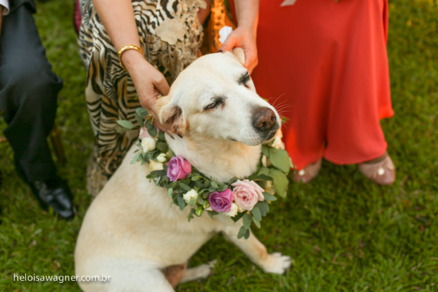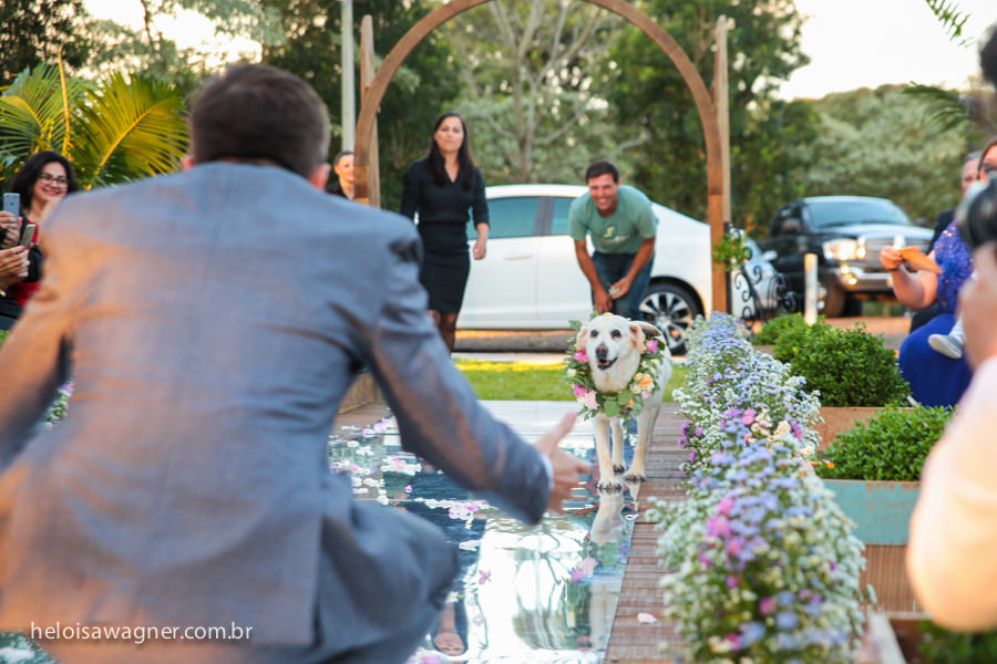 Além disso, contou com a presença especial de uma daminha de honra de quatro patas que recebeu os sorrisos mais sinceros de quem assistia sua entrada...