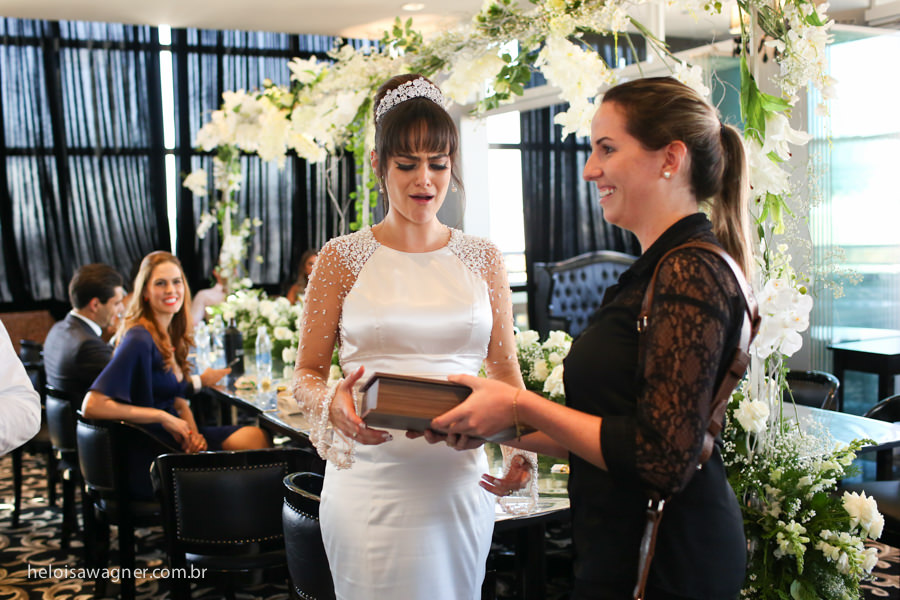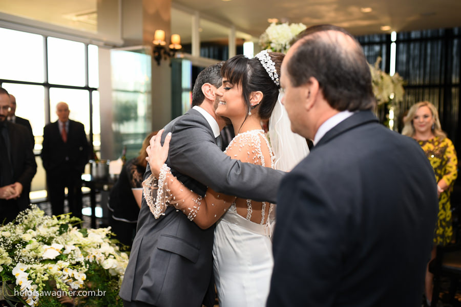 Manhã de sábado, um dia lindo, apenas familiares e padrinhos reunidos para celebrar o amor!