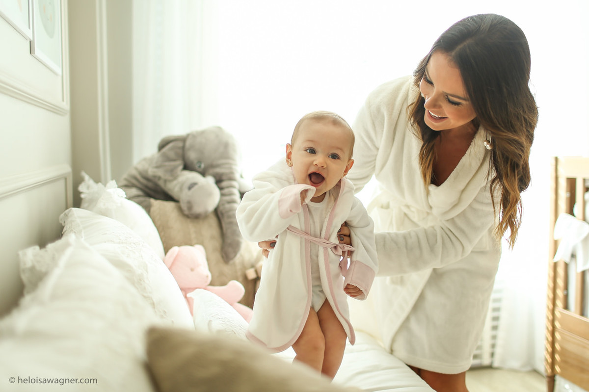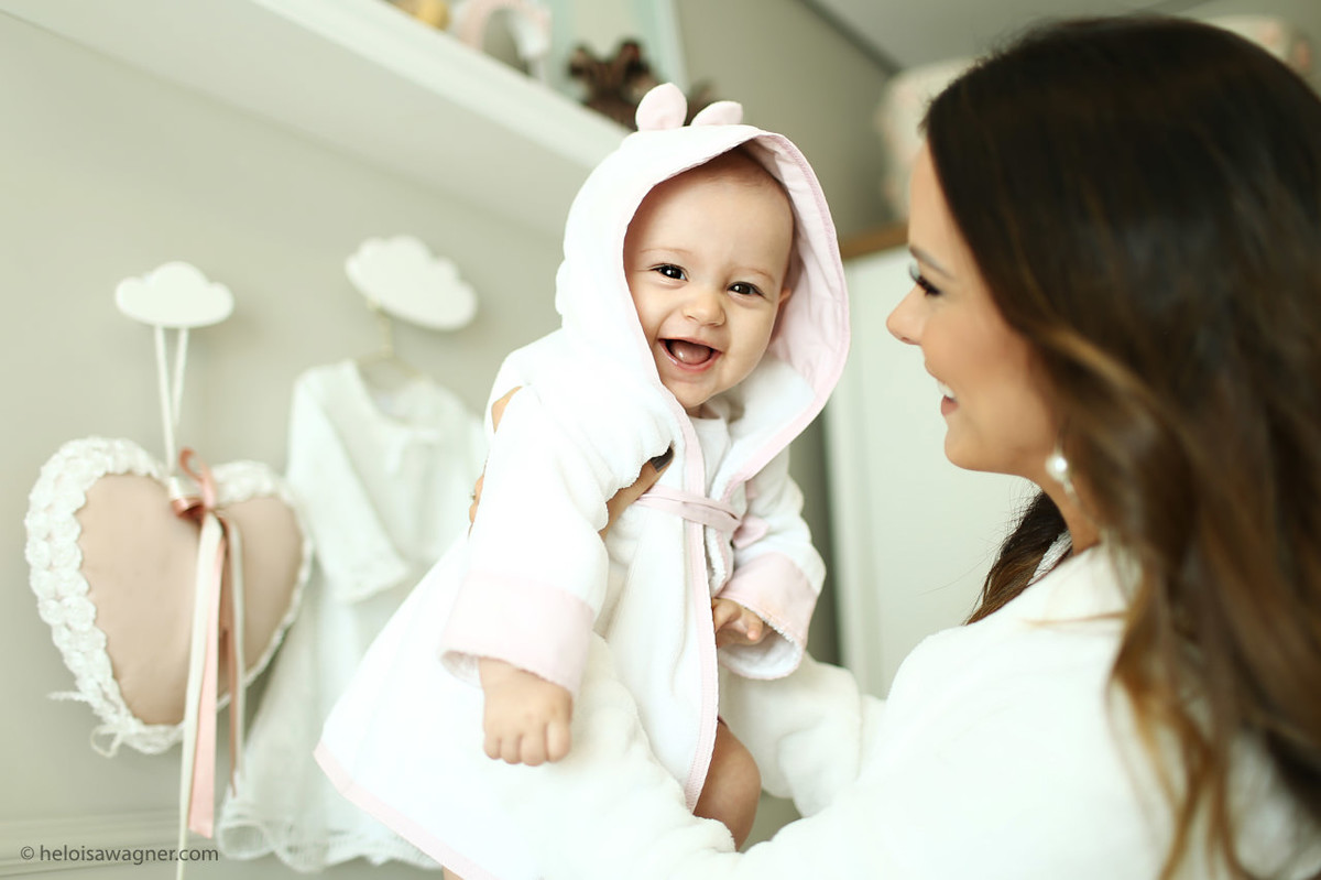 E eu estava correta! Desde o making of (sim, ela merece making of com a mamãe, com direito a roupãozinho igual) até o final do batizado, ela não tirou o sorriso do rosto!
