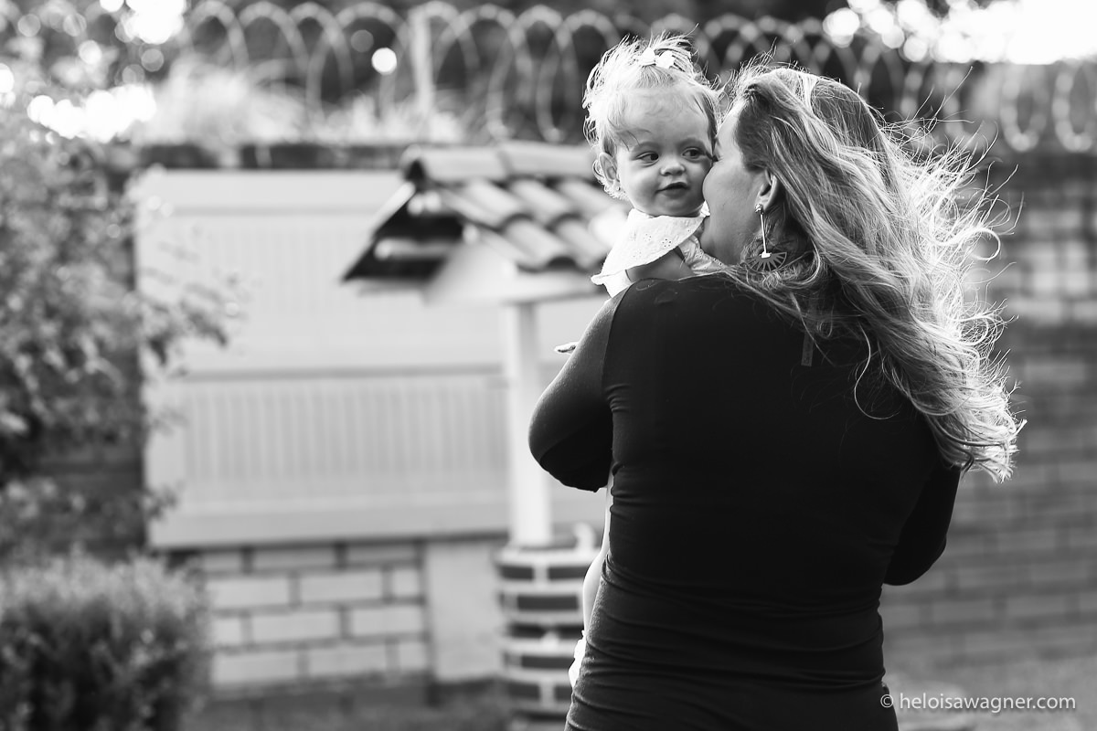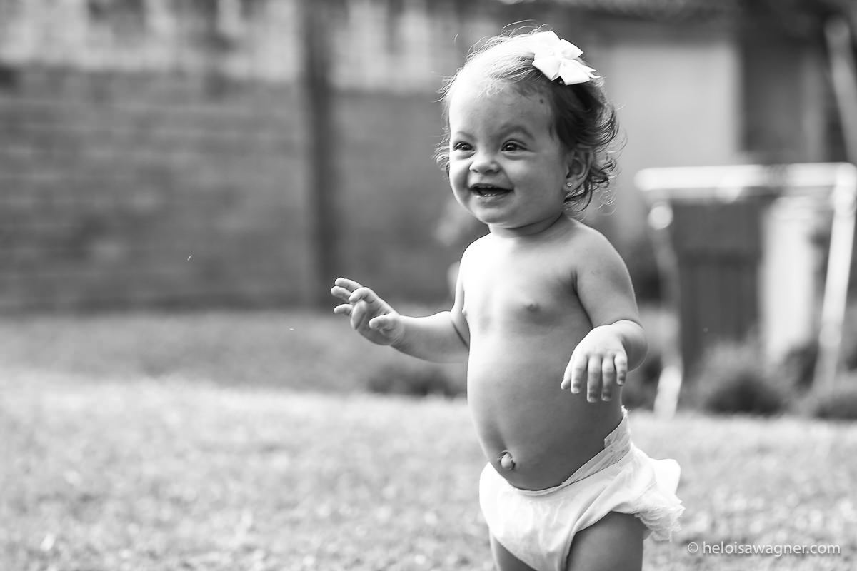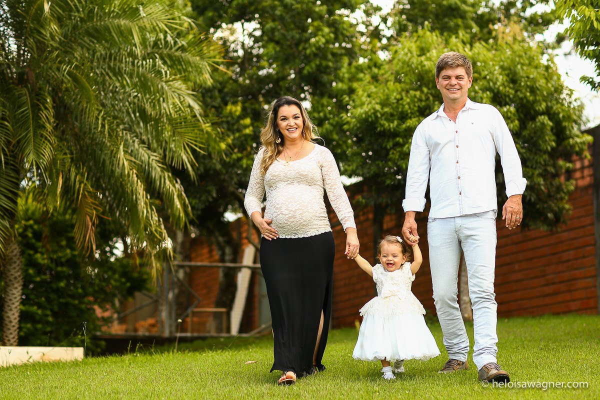 Nos encontramos num fim de tarde na casa da família e fotografamos no jardim, onde a Alícia sempre brinca! No começo do ensaio não queria de jeito nenhum colocar o vestidinho, criança adora ficar sem roupa não é mesmo? Mas depois brincou muito e super participou das fotos com os papais Eli e Paulo.